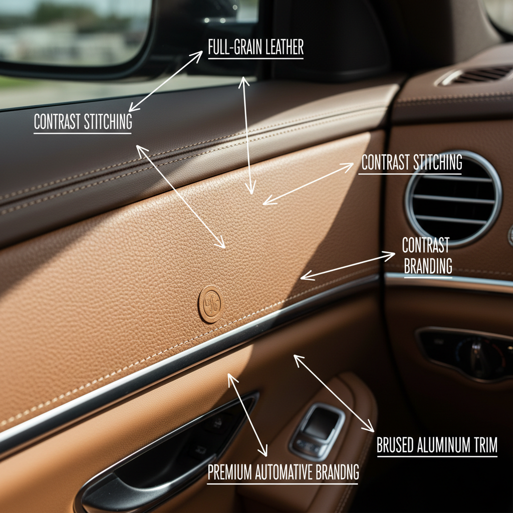 Industry secret: Many “leather” interiors are actually leather-faced—only the seat surface is real leather, while sides and backs are vinyl or plastic. Knowing this distinction can save you from overpaying for a cheap imitation.