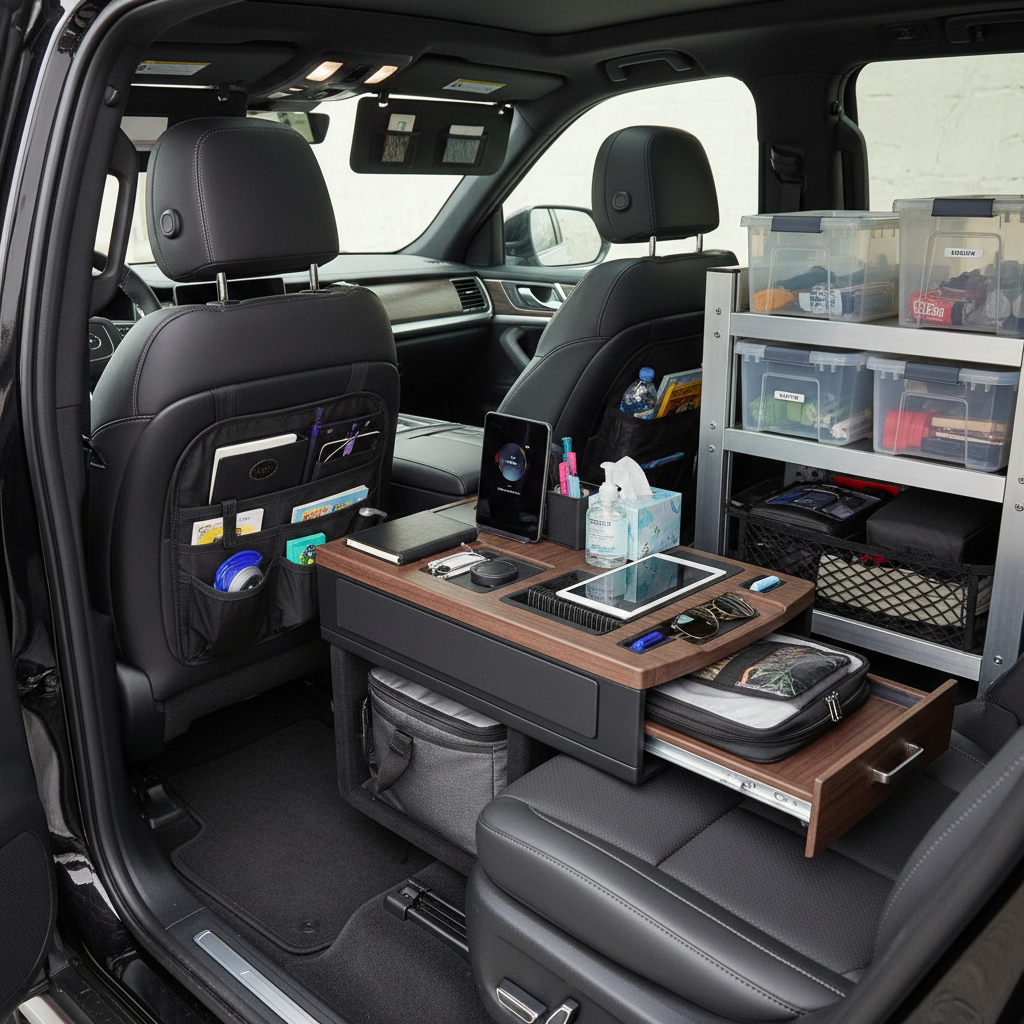 - Use seat-back organizers, under-seat storage bins, and roof racks.