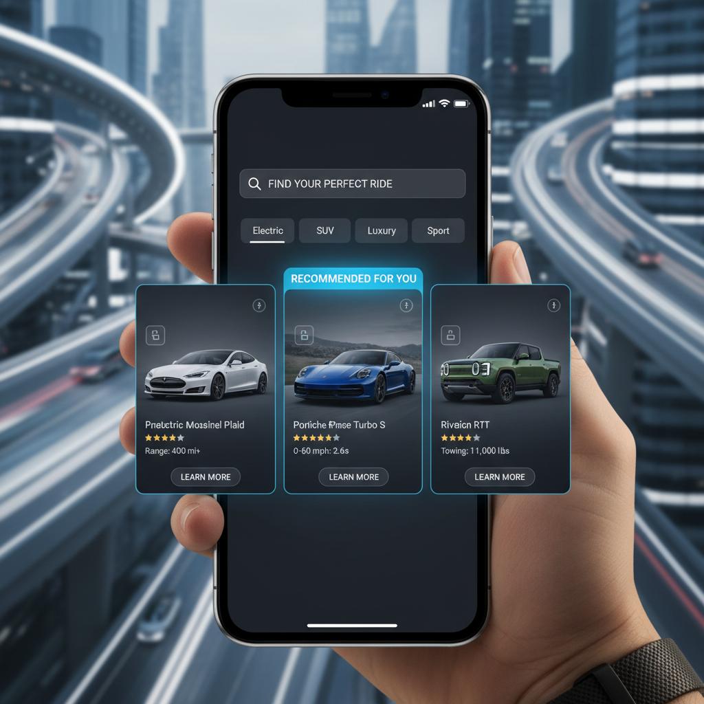 User exploring a Smart car buying assistant app for tailored car recommendations