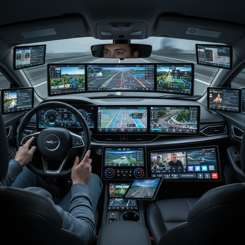 In-car systems blending navigation, media, and smartphone integration into a single (and often distracting) interface.