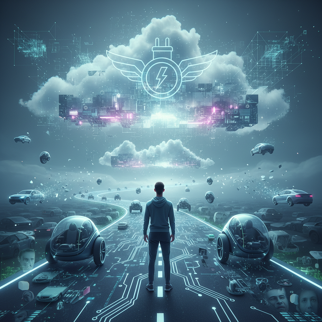Alt text: Abstract image showing electric vehicles and digital clouds, highlighting how charging anxiety and user needs are evolving with technology.