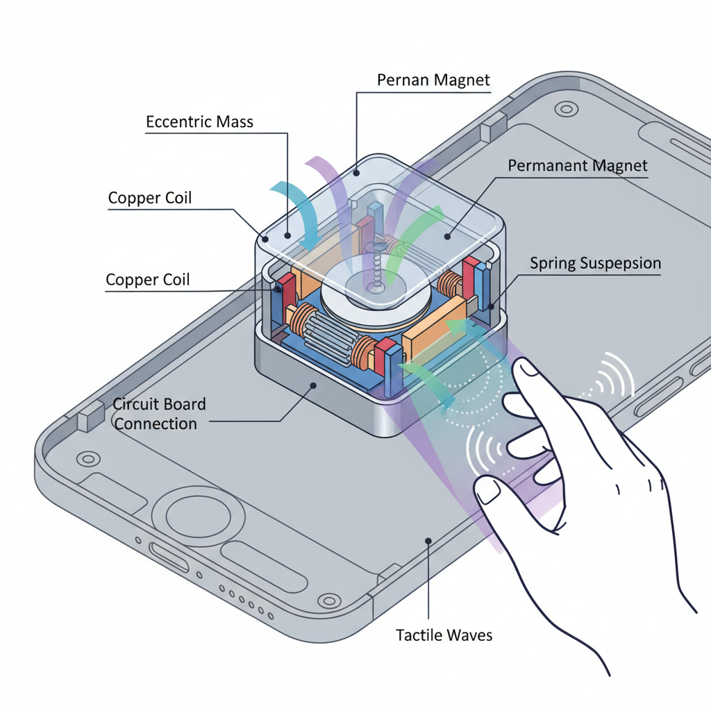 The motors or mechanisms inside devices that generate tactile or force-based sensations. Example: The tiny motor inside a smartwatch or car touchscreen.