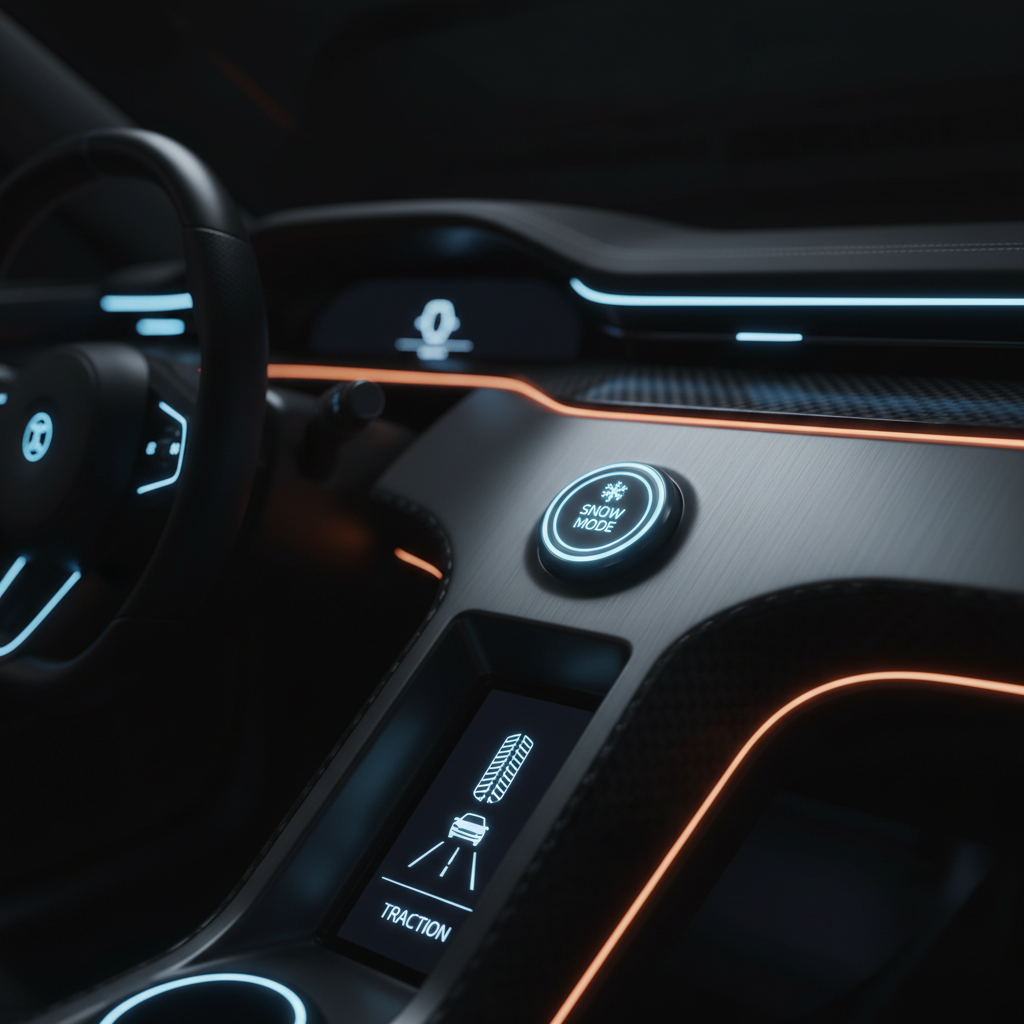 - Snow mode: A selectable drive mode that tweaks throttle sensitivity, shift strategy, and sometimes all-wheel drive (AWD) torque split to boost stability and traction in slippery conditions.